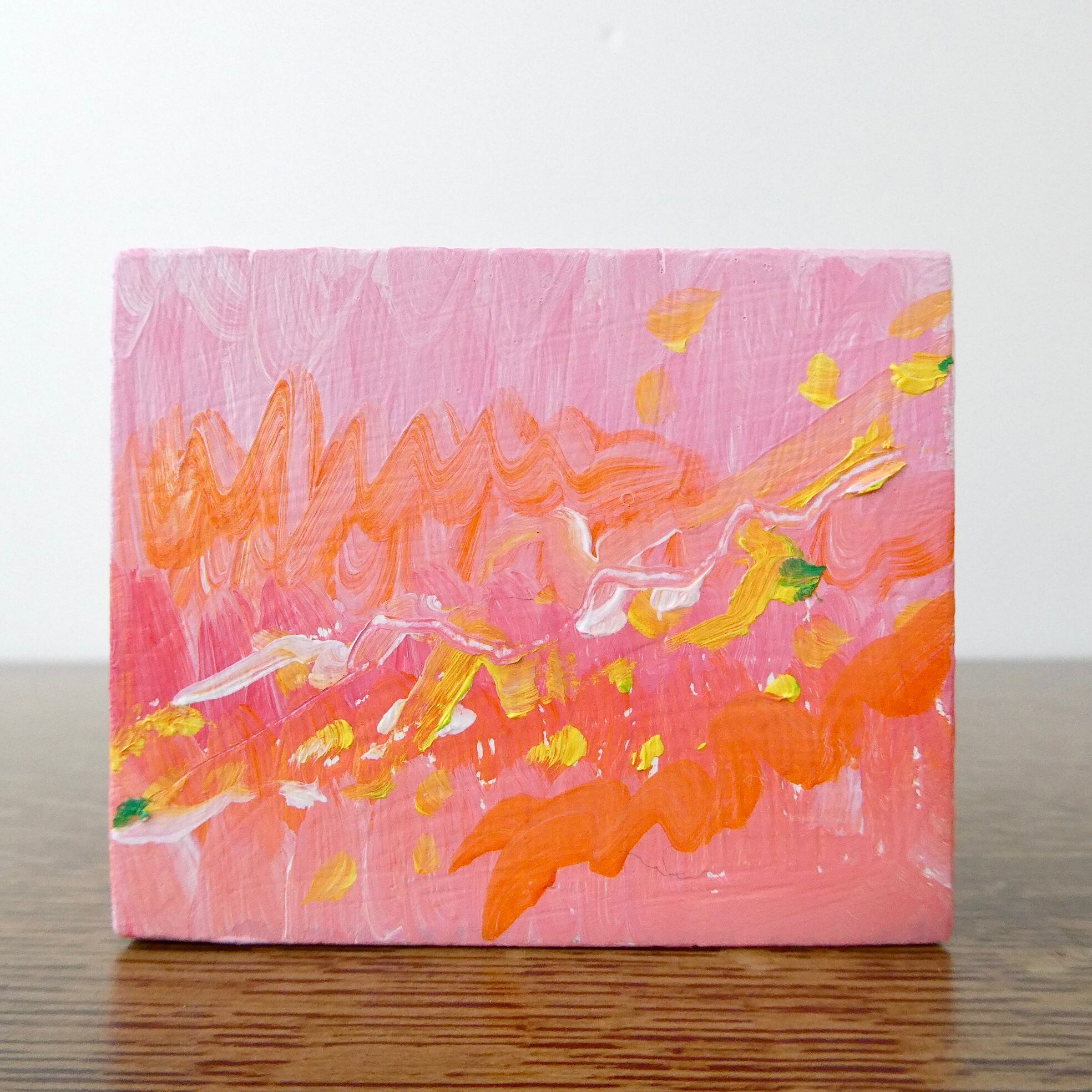 木のブロックにアクリル絵の具で描いた置き型の絵画です。